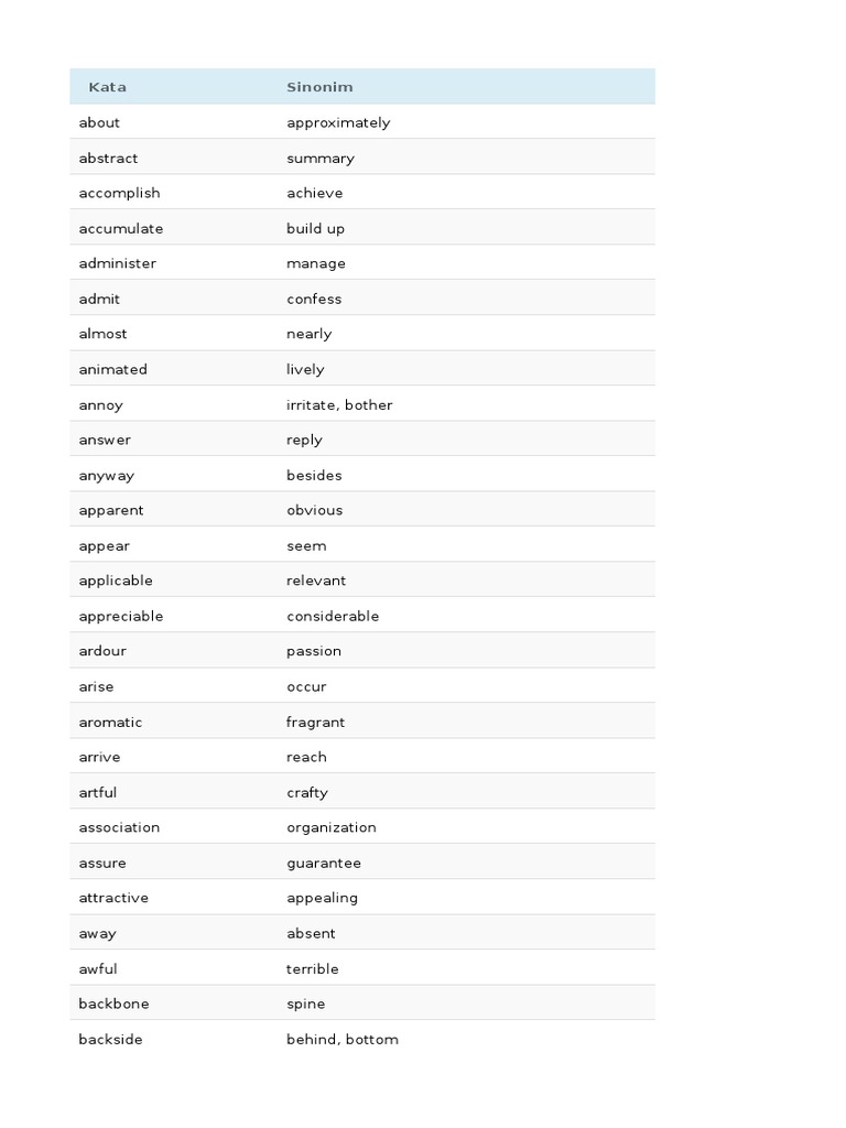 Contoh Sinonim Dalam Bahasa Inggris Beserta Artinya Terlengkap